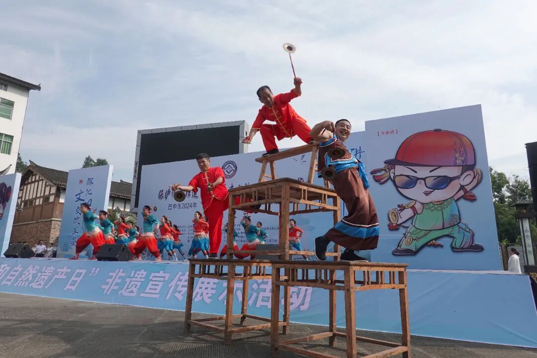 非遗展演中,由巴中市文化馆、巴中市曲艺团及三县两区文化馆、非遗中心表演的《翻山铰子》《蜀道》《打亲家》《百溪腾浪》《巴山背二歌+巴山号子》《满山情花开》《武术表演》等非遗节目轮番上演,尽展巴中市非遗项目的风采与保护成果,为现场游客带来一场传统与现代交融的艺术盛宴。