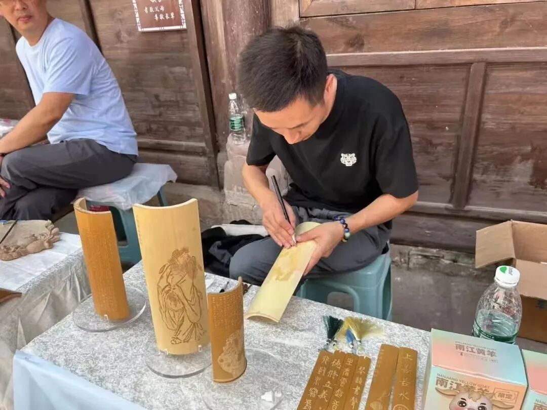 巧妙绝伦的巴中皮影、染缬奇葩的恩阳蓝印花布、技艺与美感交融的蜀绣、独具匠心的棕编,还有木雕、竹雕、竹编、拓印体验……整个活动现场共有60余个非遗、文创展位,非遗项目百花争艳,非遗传承人亮出绝活,非遗美食、非遗文创产品以及非遗体验应接不暇。市民在展台前流连驻足,不仅好玩,还增加了大众对非遗的认识,增强了文化自信。