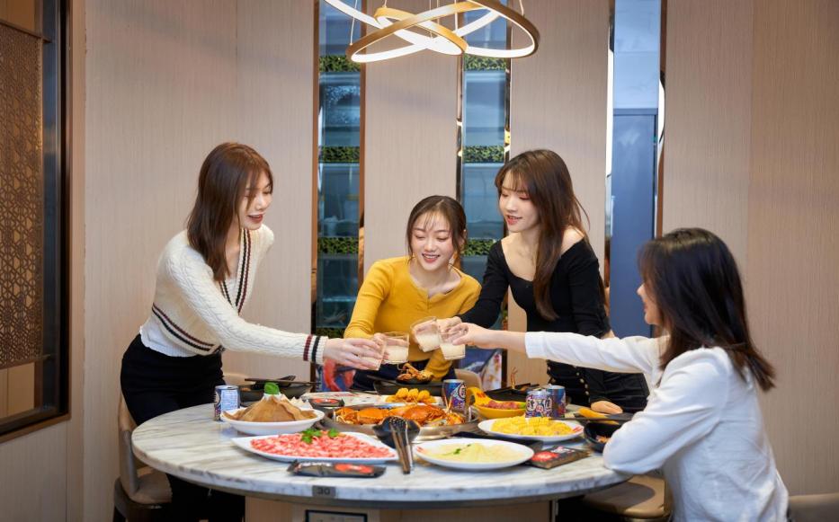 第二重享受,则是加汤涮煮的鲜美交融。随着各种肉类、蔬菜新鲜食材的加入,锅中的鲜香蟹味与食材本味交织缠绵,形成了有别于传统火锅的独特美味体验。食客们在一撩一拌、一捞一尝之间,尽情享受火锅带来的酣畅与满足。