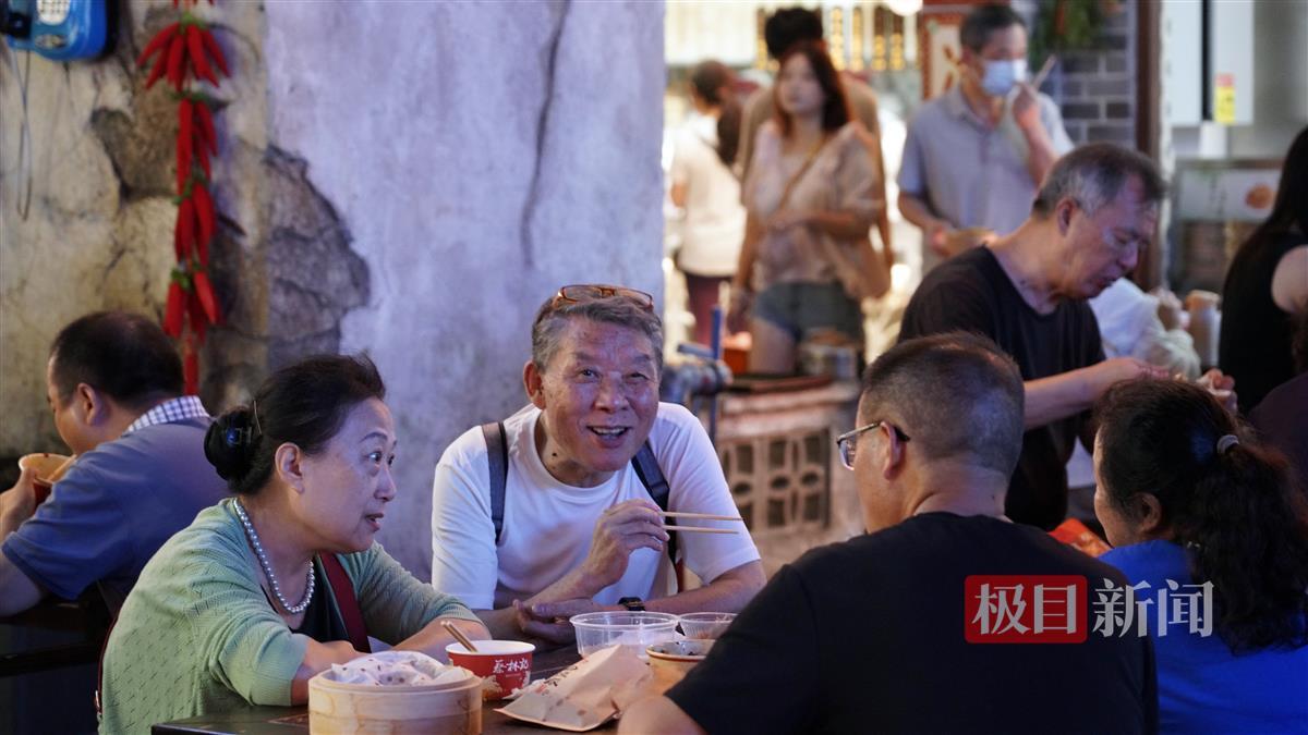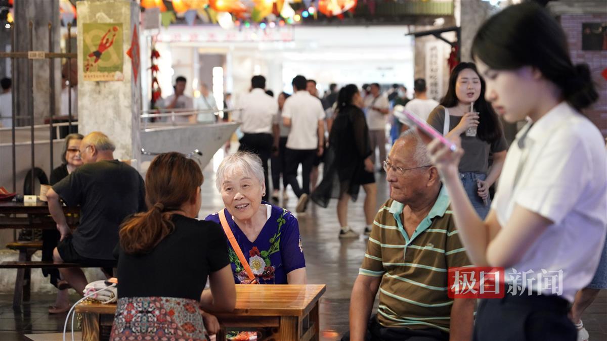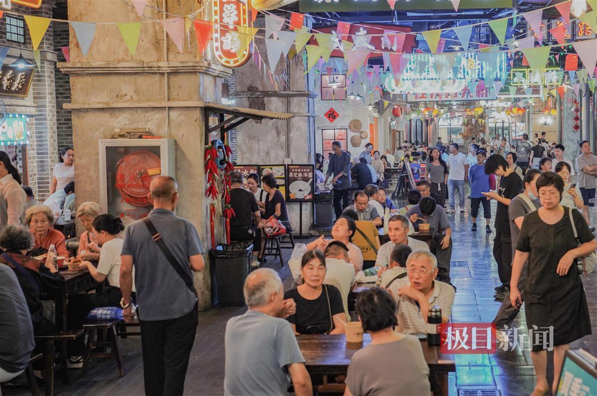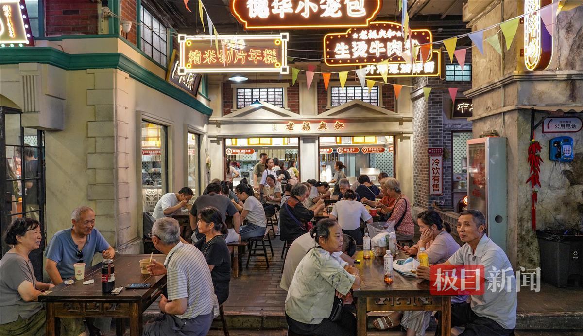 9月9日,周一午餐时,武商梦时代“楚风汉味”美食街区老人明显较多,这一还原老武汉码头文化与情怀的美食区,将老武汉的“市井文化”“著名地标”和“非遗美食”融为一体,打造了武汉上世纪70、80年代复古、怀旧主题的风格场景,深受市民和游客欢迎,更多的老市民相约来看看。