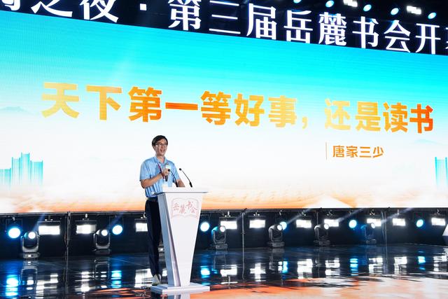 10月9日晚,第三届岳麓书会在长沙橘子洲焰火广场盛大开幕。本次书会由湖南省委宣传部指导,湖南出版投资控股集团、中南出版传媒集团联合主办。在开幕现场,备受瞩目的首届中国网络文学品牌榜重磅发布。中国网络文学品牌榜获奖代表、著名网络小说作家、中国作协主席团委员、北京市作协副主席唐家三少受邀出席,并发表了题为《天下第一等好事,还是读书》的主题演讲,与现场的观众和读者分享了自己在阅读与创作中的感悟。
