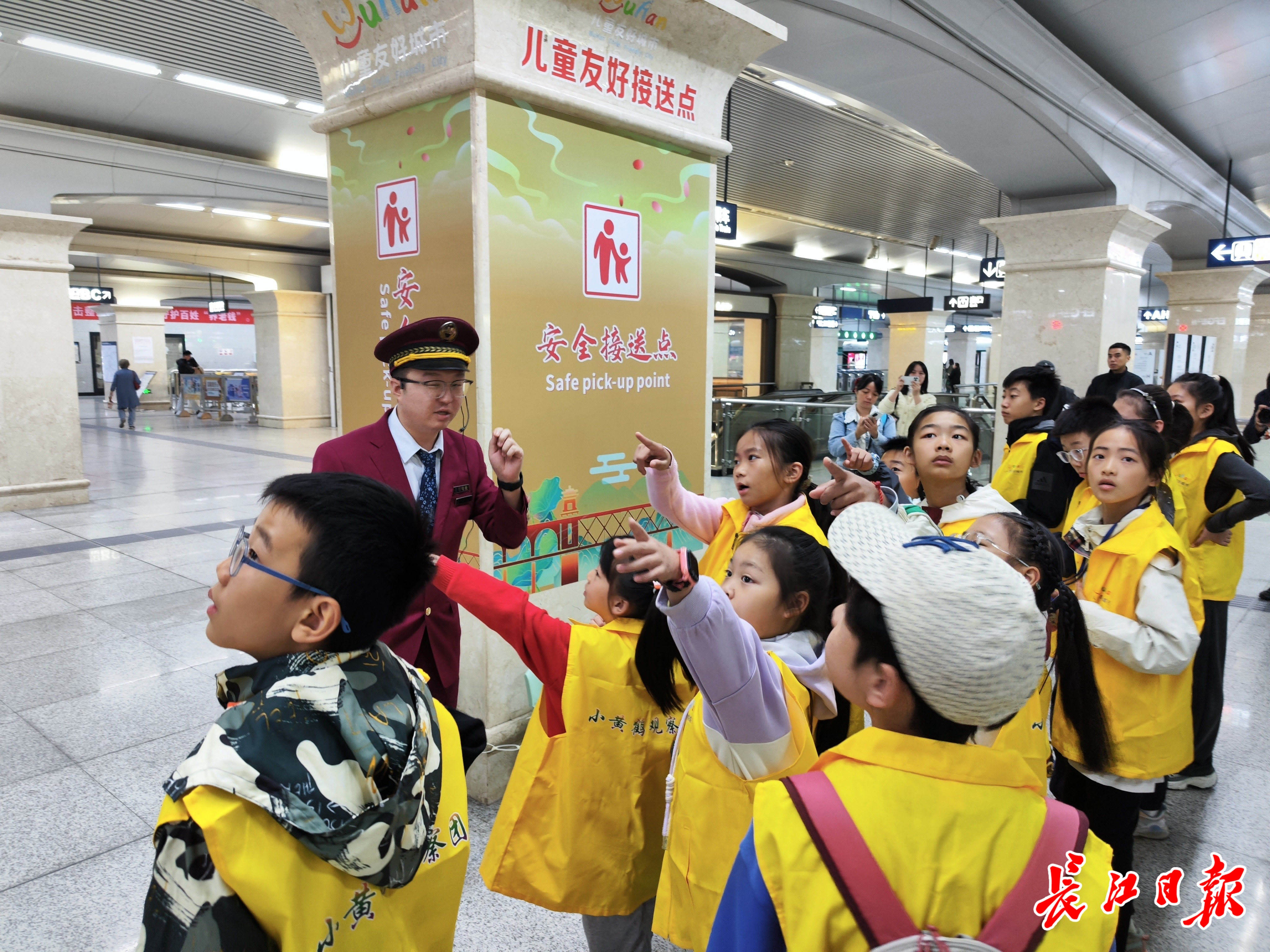 孩子们参观武汉香港路地铁站儿童友好接送点