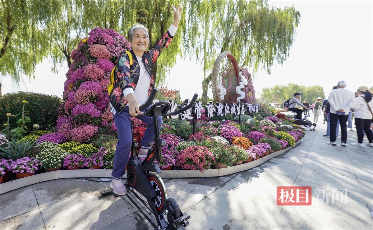 在菊展上可以骑自行车,骑车还能发电?这是武汉市园林绿化建设管理站的创意。