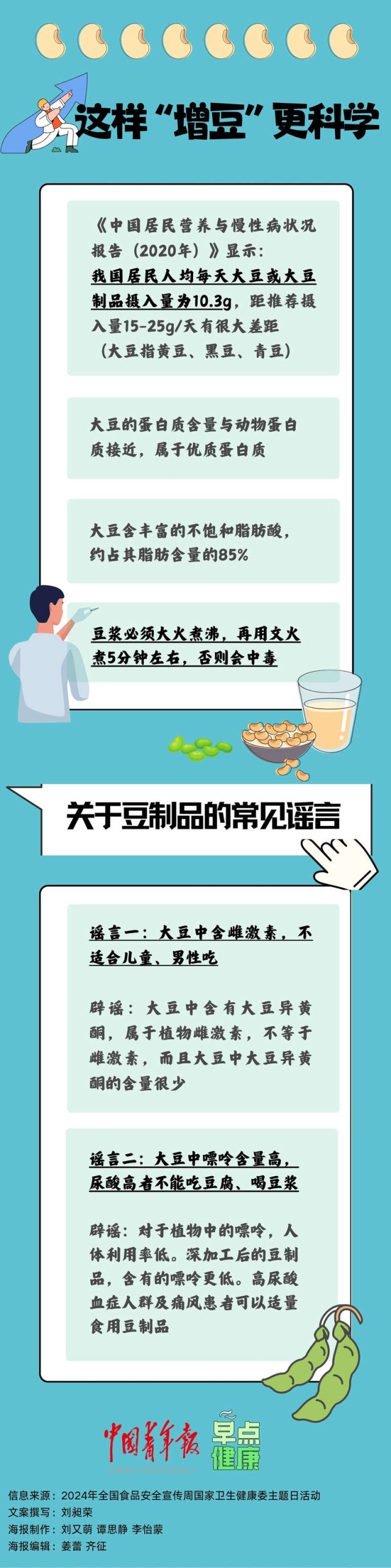 男生和尿酸高的人能不能吃大豆?根据当前我国居民突出的饮食消费不合理情况,国民营养健康指导委员会办公室组织制定了“减油、增豆、加奶”核心信息。如何“增豆”?点击图片,专家这样说。