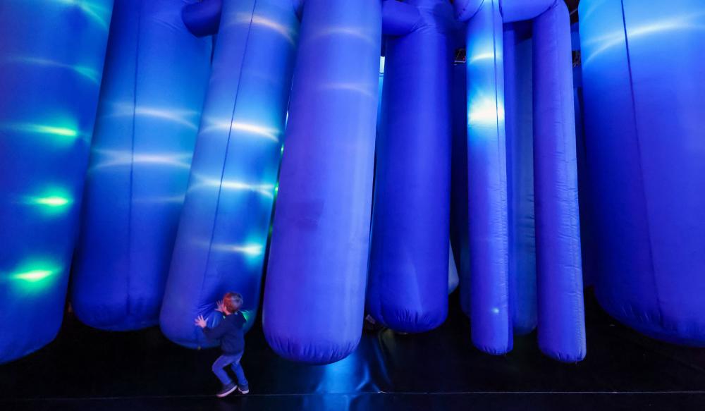 2月6日,在德国柏林气球博物馆,一个儿童参观“Pop Air,艺术是充气的”展览。新华社/欧新