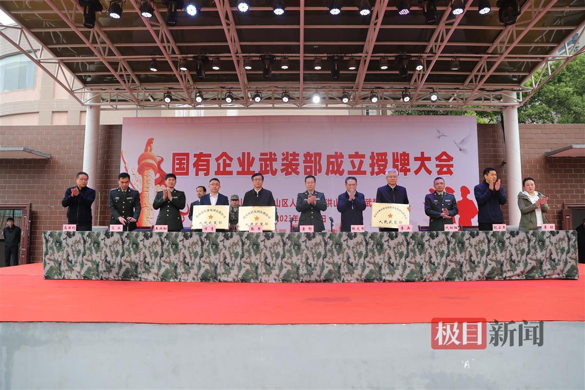 4月6日,武汉市洪山区召开企业武装部成立授牌大会,辖区中电建装备集团、武汉地铁集团、武汉城投集团3家重点市属国有企业正式设立基层人民武装部。这也是武汉市首批成立的市属国企武装部。