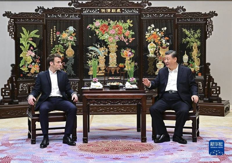 两国元首还就乌克兰危机交换了意见。习近平强调,中方在乌克兰问题上立场一以贯之、清晰明确,核心就是劝和促谈、政治解决。化解危机没有灵丹妙药,需要各方从自身做起,通过积累互信创造止战和谈条件。中方支持欧方为政治解决危机发挥作用,愿同法方一道呼吁国际社会保持理性克制,避免采取使危机进一步恶化甚至失控的行动;严格遵守国际人道法,避免袭击平民和民用设施,保护妇女、儿童等冲突受害者;切实履行核武器用不得、核战争打不得的承诺,反对在任何情况下使用生化武器,反对武装攻击核电站等民用核设施;尽快重启和谈,按照联合国宪章宗旨和原则,兼顾各方合理安全关切,寻求政治解决,构建均衡、有效、可持续的欧洲安全框架;合作应对乌克兰危机在粮食、能源、金融、交通等领域造成的外溢效应,减少乌克兰危机对世界特别是广大发展中国家的负面影响。中方愿同法方就此保持沟通,为危机的政治解决发挥建设性作用。