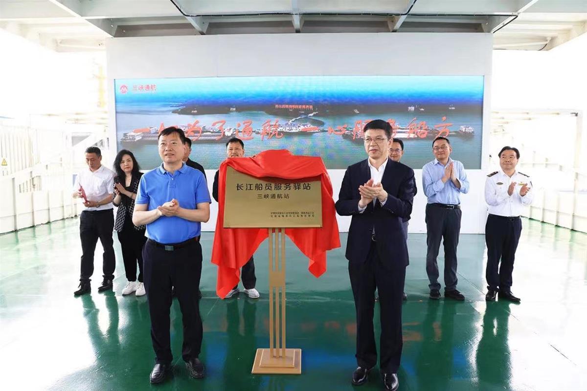 4月19日,“长江船员服务驿站·三峡通航站”授牌仪式在长江三峡通航综合服务区(以下简称综合服务区)举行。湖北省总工会党组书记、常务副主席陈惠霞与交通运输部长江航务管理局(以下简称长航局)党委书记、副局长缪昌文共同为“长江船员服务驿站·三峡通航站”揭牌。