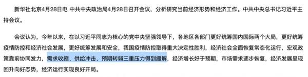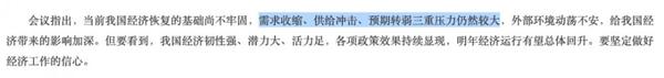 划重点,需求收缩、供给冲击、预期转弱三重压力得到缓解。