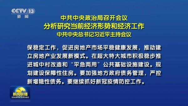 要坚持房子是用来住的、不是用来炒的定位,因城施策,支持刚性和改善性住房需求,做好保交楼、保民生、保稳定工作,促进房地产市场平稳健康发展,推动建立房地产业发展新模式。