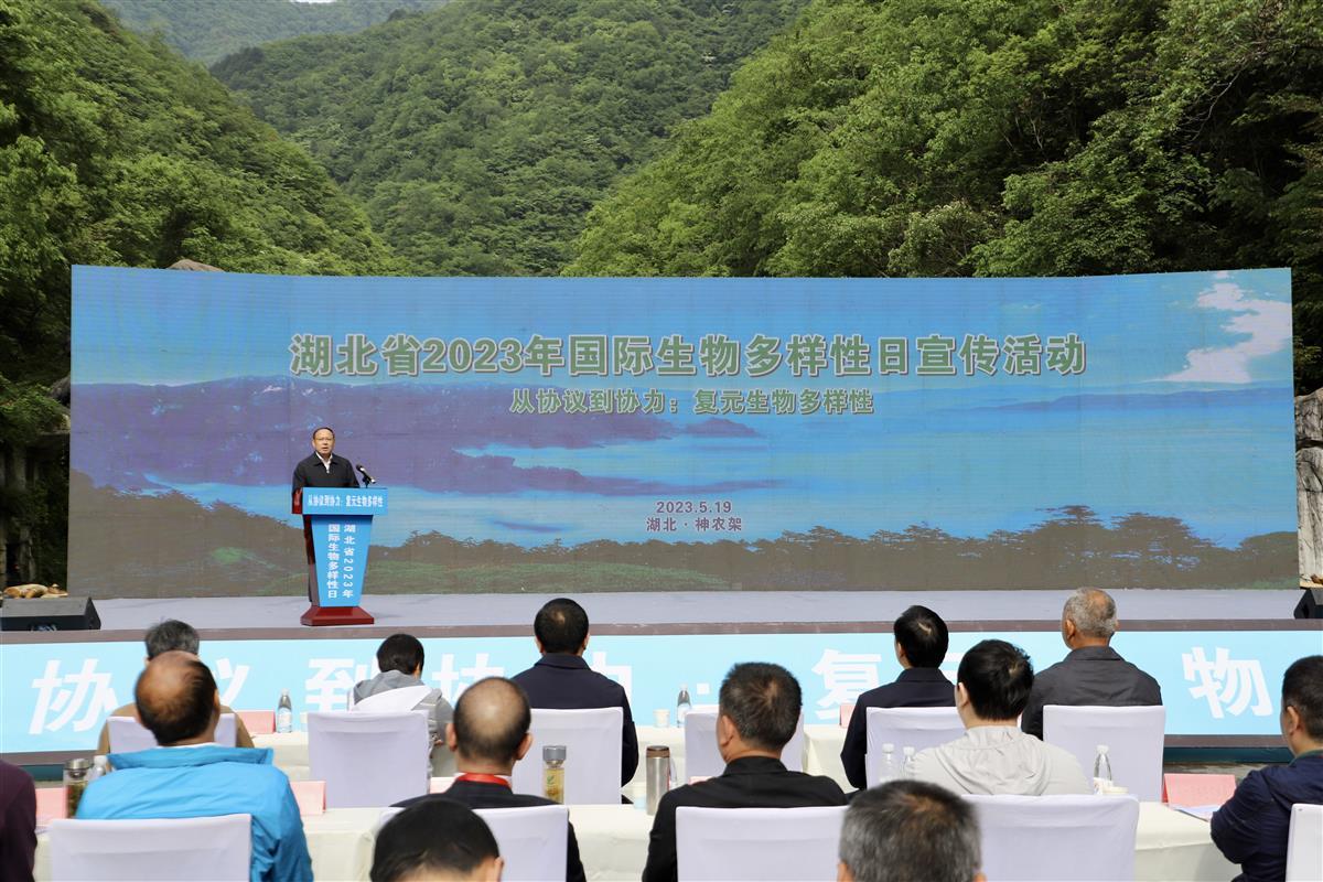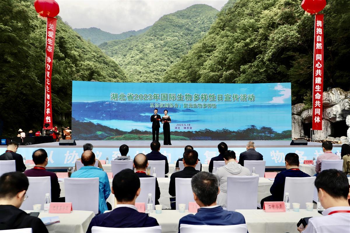 5月19日上午,在第三十个“国际生物多样性日”来临之际,湖北省2023年国际生物多样性日宣传活动在神农架林区举行。今年的活动主题是“从协议到协力:复元生物多样性”。