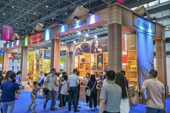 2022年7月27日,第二届中国国际消费品博览会在海南省海口市继续进行。图为第二届中国国际消费品博览会上的越南展台。图源 ICphoto