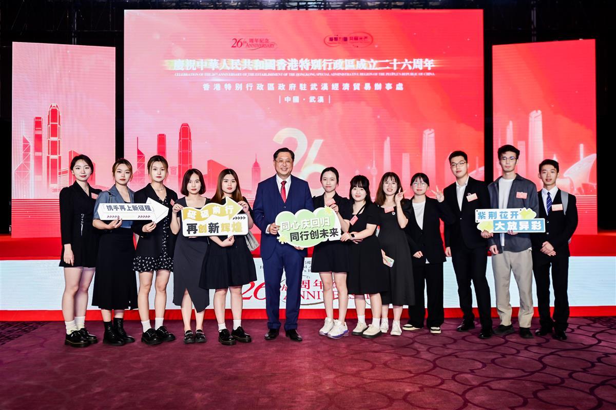 7月6日晚,香港特区政府驻武汉办事处在湖北省武汉市举办香港特别行政区成立二十六周年酒会,与会嘉宾畅谈鄂港合作新机遇、新未来。
