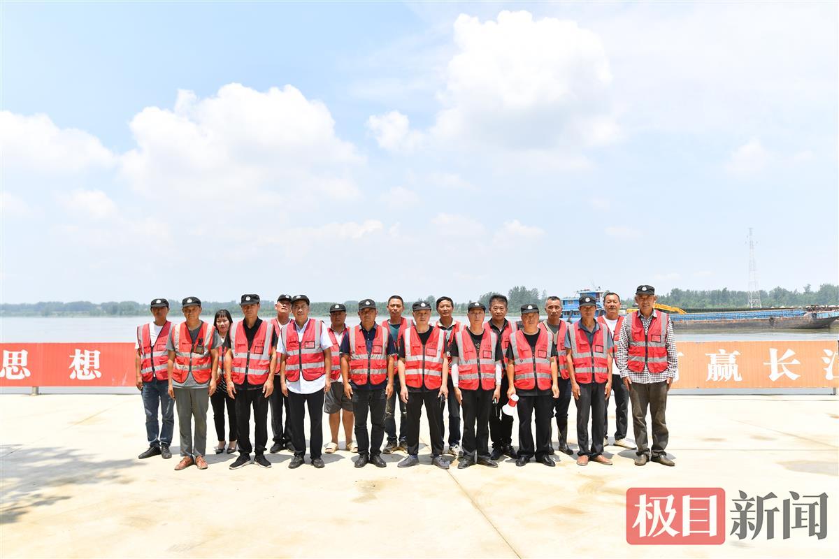 给钟祥市重点水域护渔队拍合影,最大的难题居然是人太多了,镜头难以容纳所有人。在汉江沿线各村,共有59名护渔员,即使除开一些较为偏远的巡护点上来不及赶来的队员,参与合影的人也有二三十人,堪称是一支“大护渔队”。