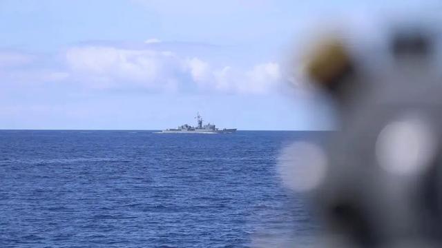 台岛西南,水面舰艇与反潜直升机组网建链,构成海空立体联合反潜体系,对水下目标展开广域搜索,对可疑目标快速多源验证,展开模拟攻击。