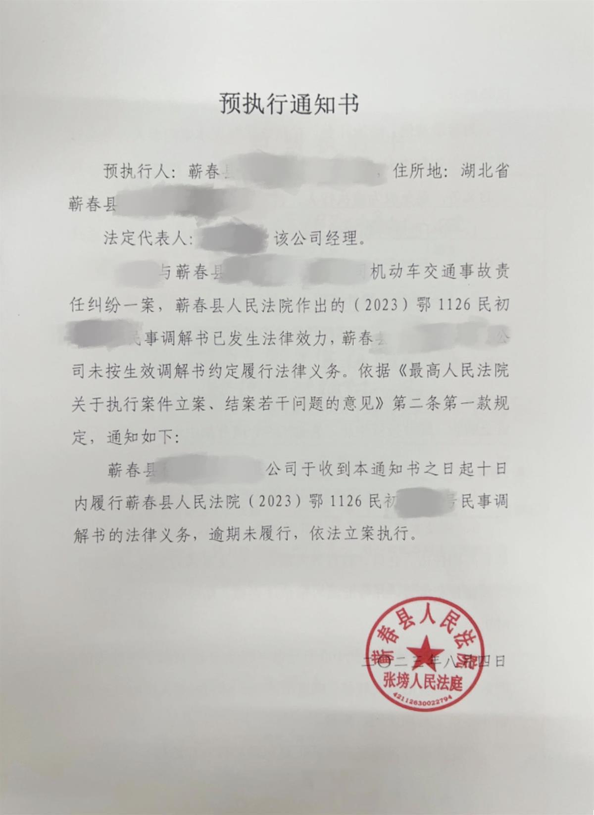 案件即将进入强制执行环节,法院送达《预执行通知书》,“点醒”被执行人,促其主动赔钱。近日,湖北省黄冈市蕲春县人民法院通过“失信惩戒预告知”机制,引导企业积极履行法律义务,既兑现了申请人的胜诉权益,又保障了企业的正常经营。