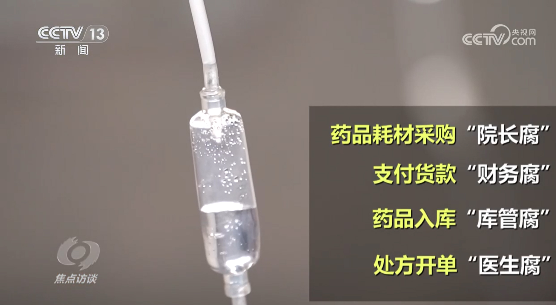 李玲:“它暴露出来的,以药养医、以耗材器械养医补医这个现象层出不穷。腐败来源其实是在于虚高了流通领域的价格,一个出厂价30多块钱的药,到消费者手上变成100多块钱,然后用虚高的价格给各路人马分配。”