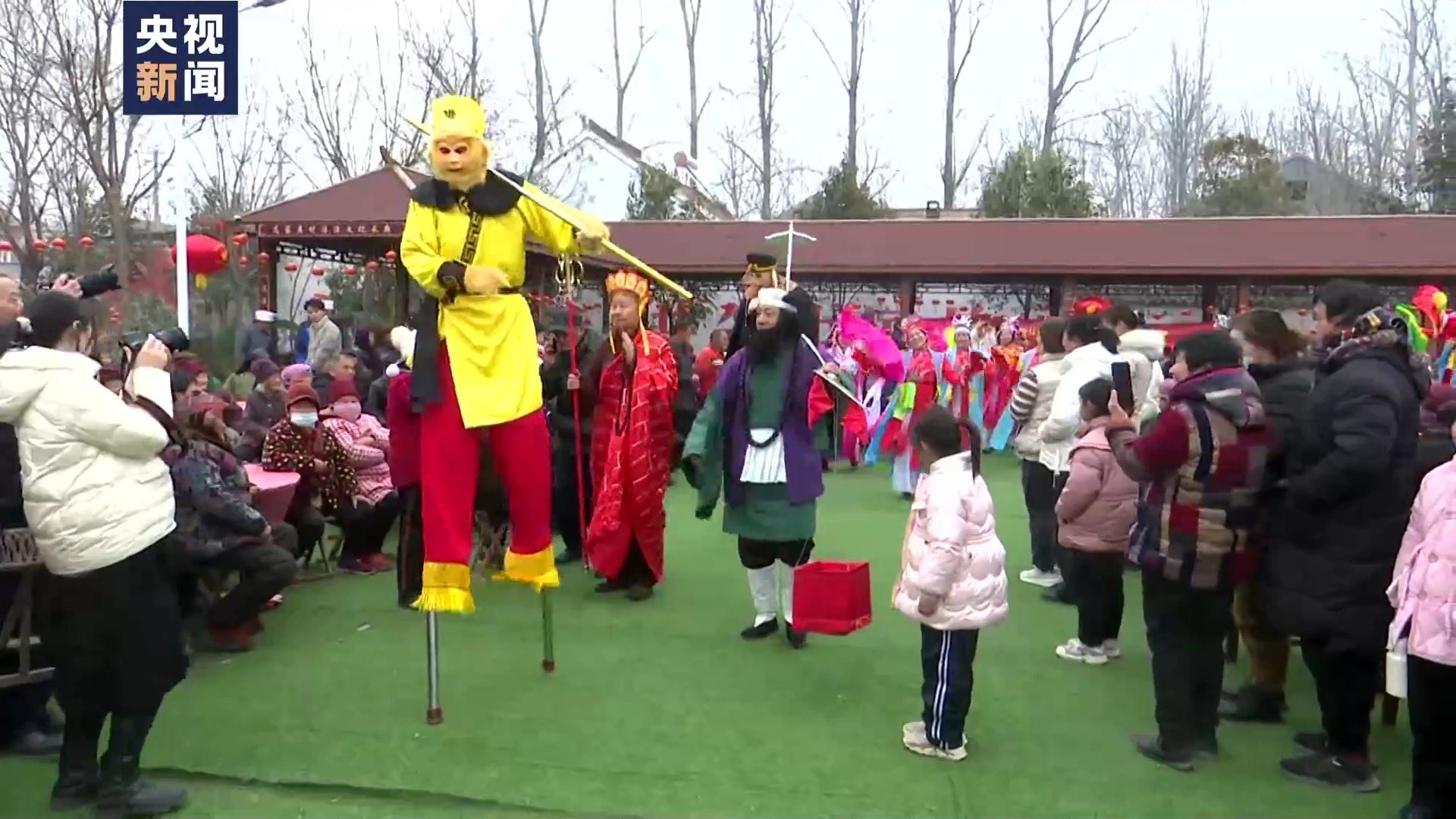 在山东菏泽单县高家庄村的文化广场上,舞龙、舞蹈、踩高跷等村民自编自演的节目一一上演,演员们个个精神抖擞,神采飞扬。节目将当地民俗与群众文化活动融为一体,吸引了不少村民前来观看演出,感受着浓浓年味。