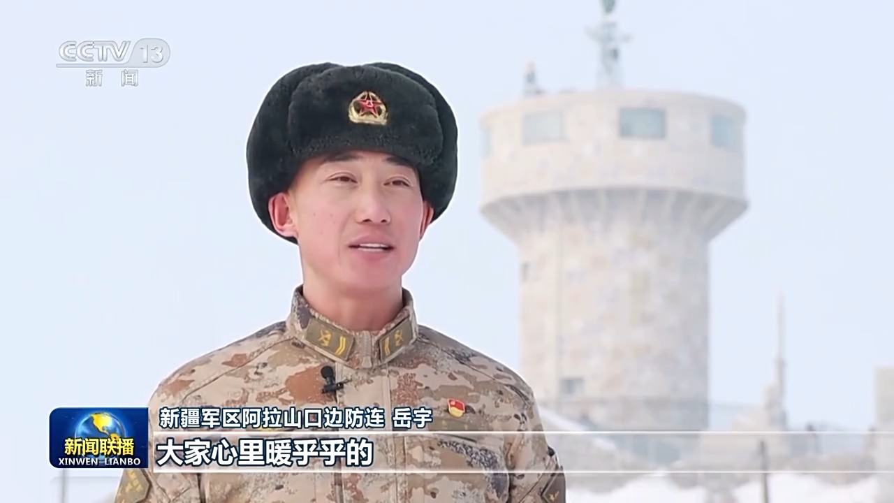 新疆军区阿拉山口边防连 岳宇:习主席在讲话中专门叮嘱要安排好我们的节日生活,大家心里暖乎乎的。近年来连队执勤、工作、生活条件得到了大大改善,春节期间新鲜的蔬菜水果、牛羊肉供应充足,连队还将组织篮球比赛、联欢会等文化活动,战友们都能够安心岗位、满怀热情守卫国门,请党和人民放心!