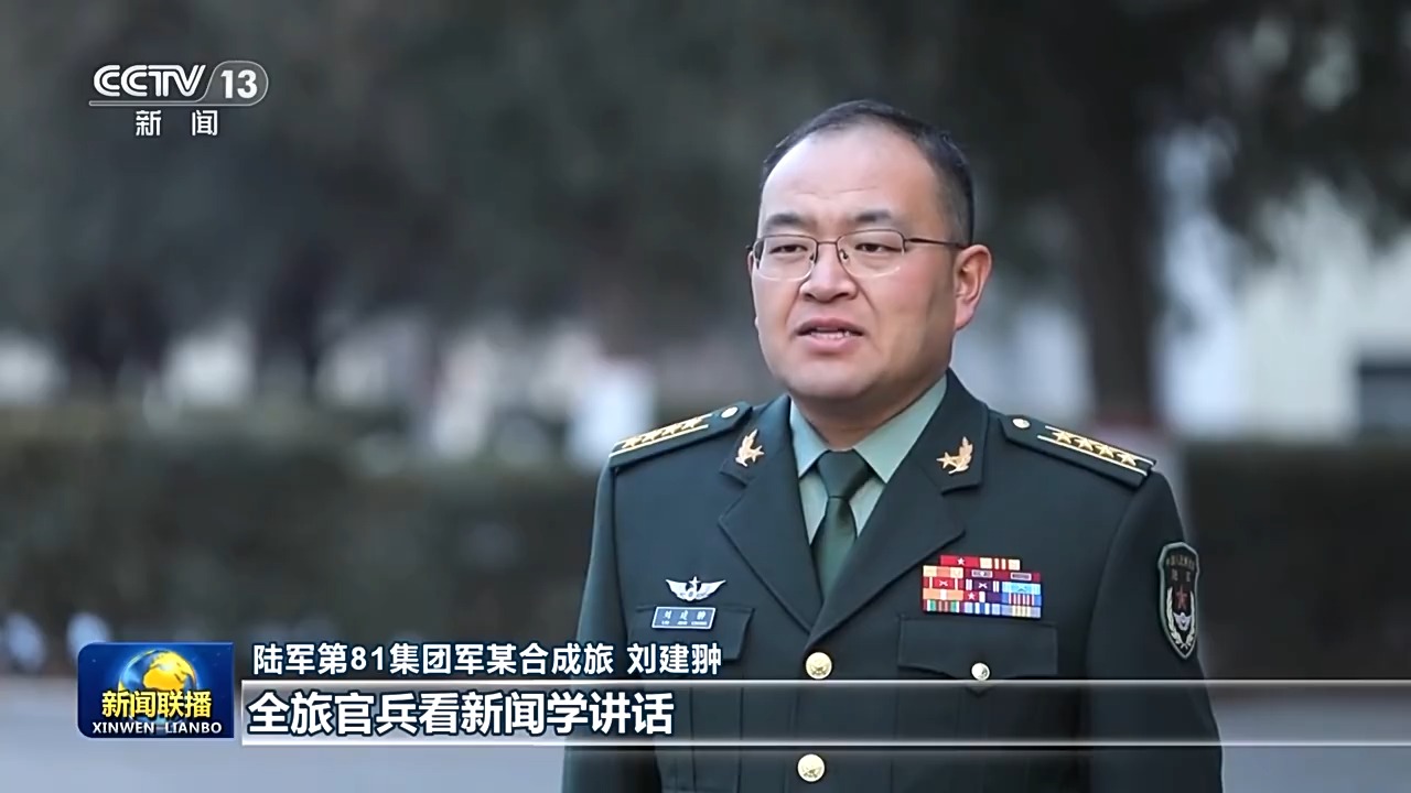 陆军第81集团军某合成旅 刘建翀:现场聆听习主席重要讲话,感到很温暖、很有力量,全旅官兵看新闻学讲话,立足本职奋斗强军的热情高涨。我们将强化思想引领,做好立根固本、铸魂育人工作,激励官兵学习强军思想、建功强军事业,聚力锻造合成多能的精兵劲旅。