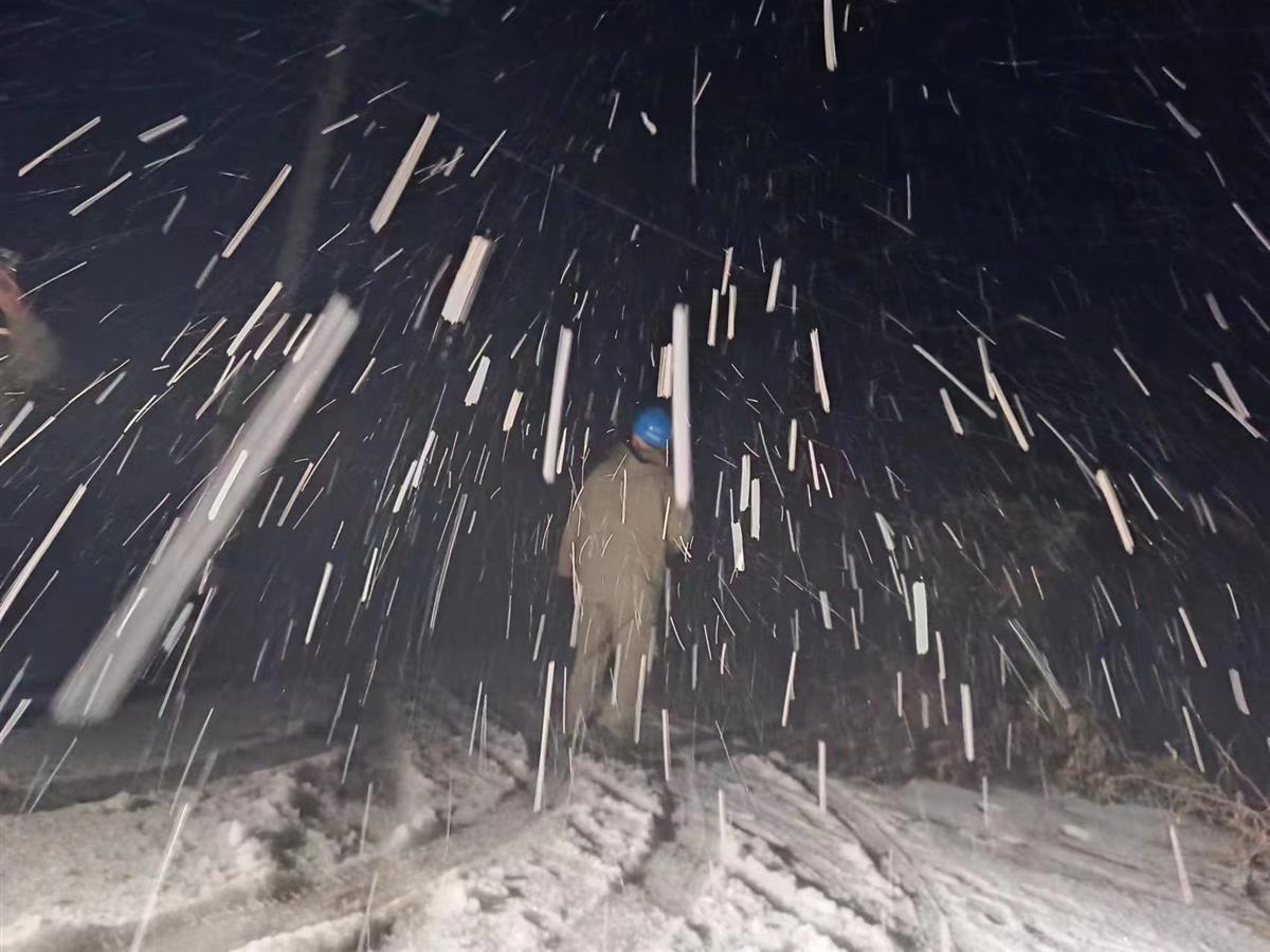 “雨雪太大看不清楚,把灯光打好,一定要把数据报送准确。”4日凌晨5时,在荆州市马山镇,现场蹲守观测人员周建华举着望远镜对一旁打光的郭宝健说,他们正在观测一条由四川白鹤滩送往浙江的特高压线路的舞动情况。