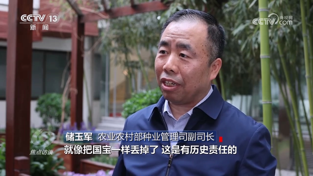 农业农村部种业管理司副司长储玉军:“国家库是国之重器,种质资源安全党中央国务院高度重视,如果不及时收集,丧失掉,就像把国宝丢掉了,这是有历史责任的,所以早一天抓,早一天见效,早一天把它放在库里才能安心。要把种源安全提升到关系国家安全的战略高度,抓好种业振兴,服务保障国家粮食安全。”