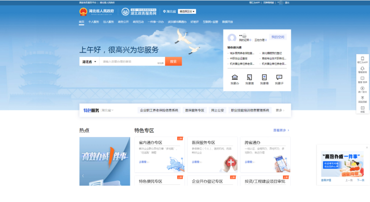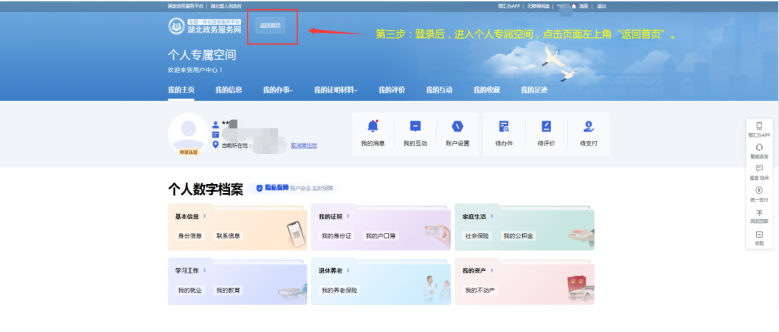 第三步 登录成功后返回湖北政务服务网首页