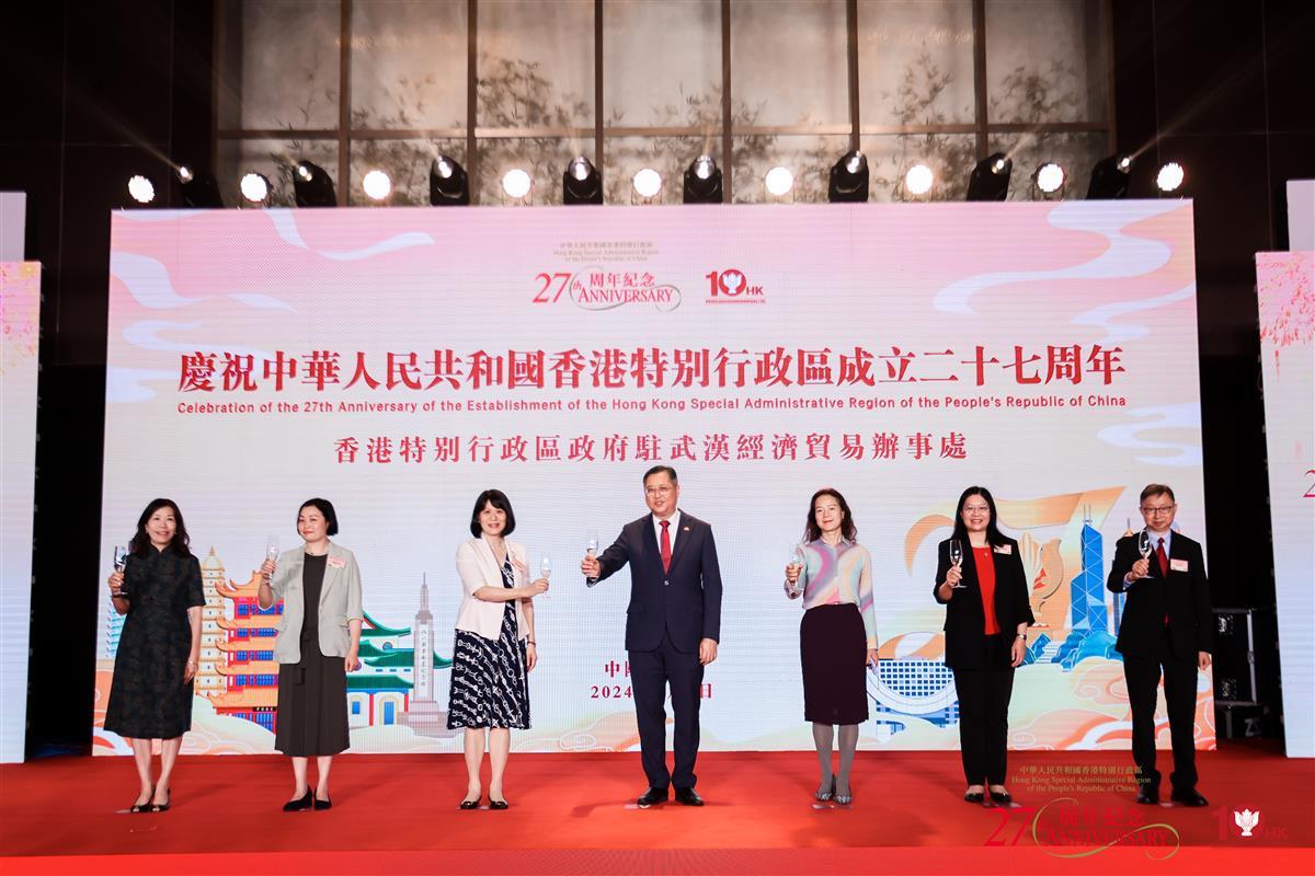 7月3日,为庆祝香港回归祖国27周年,香港特别行政区政府驻武汉经济贸易办事处在汉举行酒会。香港特别行政区政府驻武汉经济贸易办事处主任郭伟勋表示,期待全方位加强香港与湖北省的交流与合作。