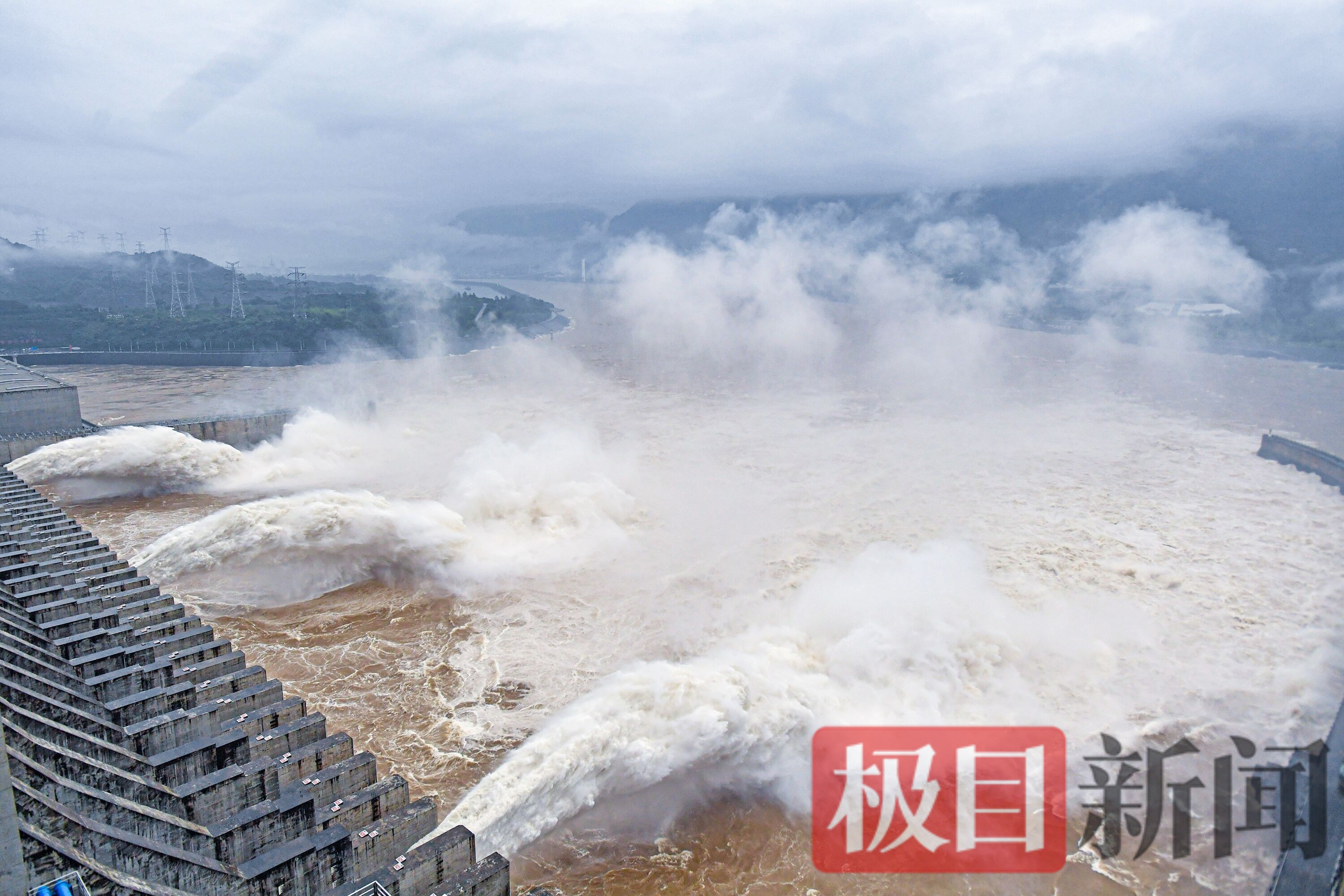 三峡水库三孔泄洪