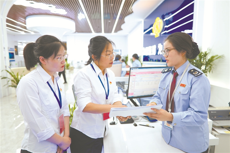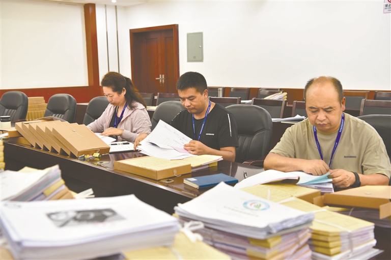 河南省洛阳市孟津区纪委监委联合税务部门通过“智慧税务”、大数据比对等方式,筛查党员干部是否存在兼职违规取酬、挂证取酬等问题线索。图为近日,该区纪检监察干部到区税务局了解相关情况。吕晓鹏 摄