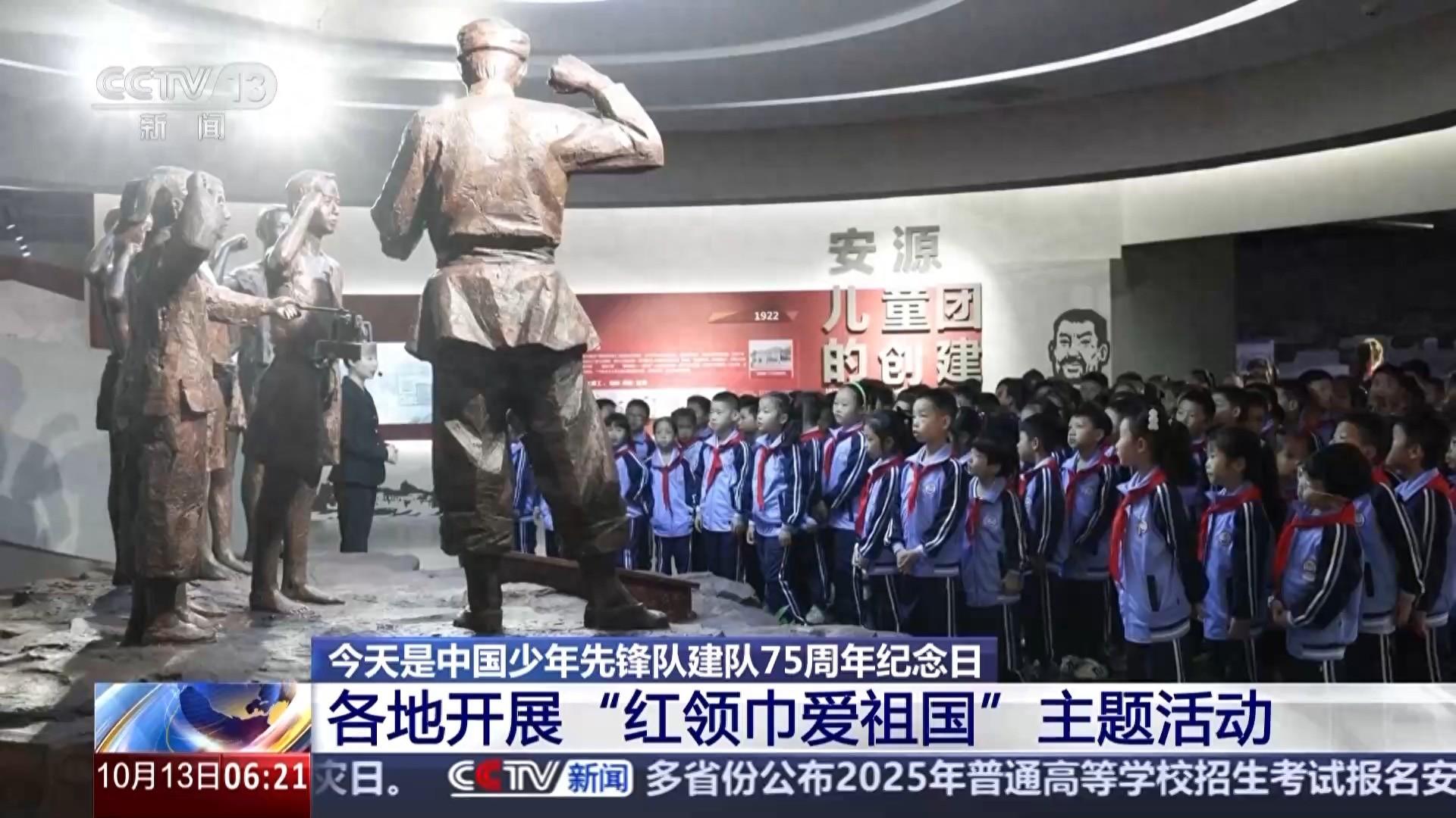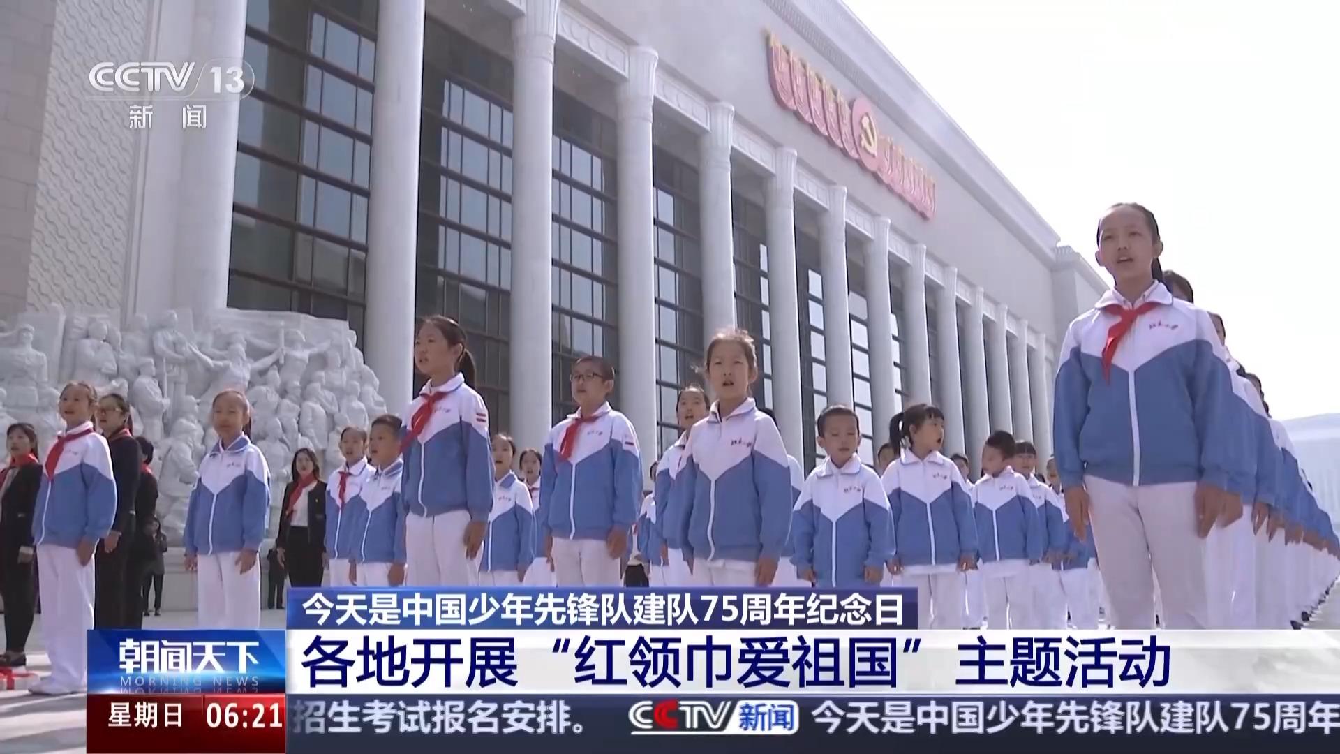 今天(13日),是中国少年先锋队建队75周年纪念日,共青团中央、全国少工委组织开展“红领巾爱祖国”主题活动。连日来,各地少先队员通过主题队课、入队仪式、寻访实践等活动,立志传承红色基因,树立远大理想,努力成长为堪当强国建设、民族复兴大任的栋梁之材。