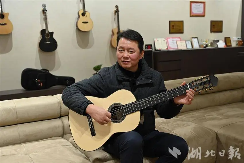 他就是汪锋华,土生土长的松滋人。汪锋华1974年出生,1992年入伍,服役期间表现优异,荣获连嘉奖2次,优秀士兵1次。1995年,21岁的汪锋华从部队退役后,辗转多地打短工。2003年,他来到广州市花都区一家吉他厂打工,自此与吉他结缘。
