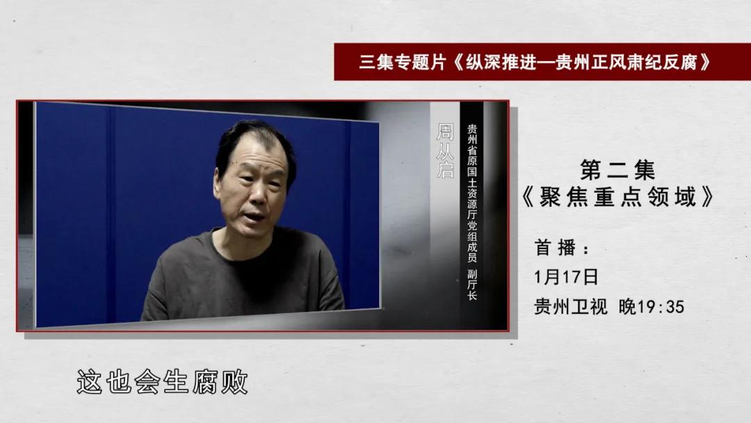 1月17日晚上,贵州反腐专题片《纵深推进—贵州正风肃纪反腐》第二集《聚焦重点领域》将播出。