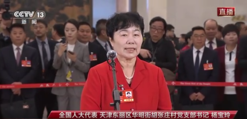 今天(3月8日),十四届全国人大三次会议第二场“代表通道”在人民大会堂举行,全国人大代表、天津东丽区华明街胡张庄村党支部书记杨宝玲接受记者采访。