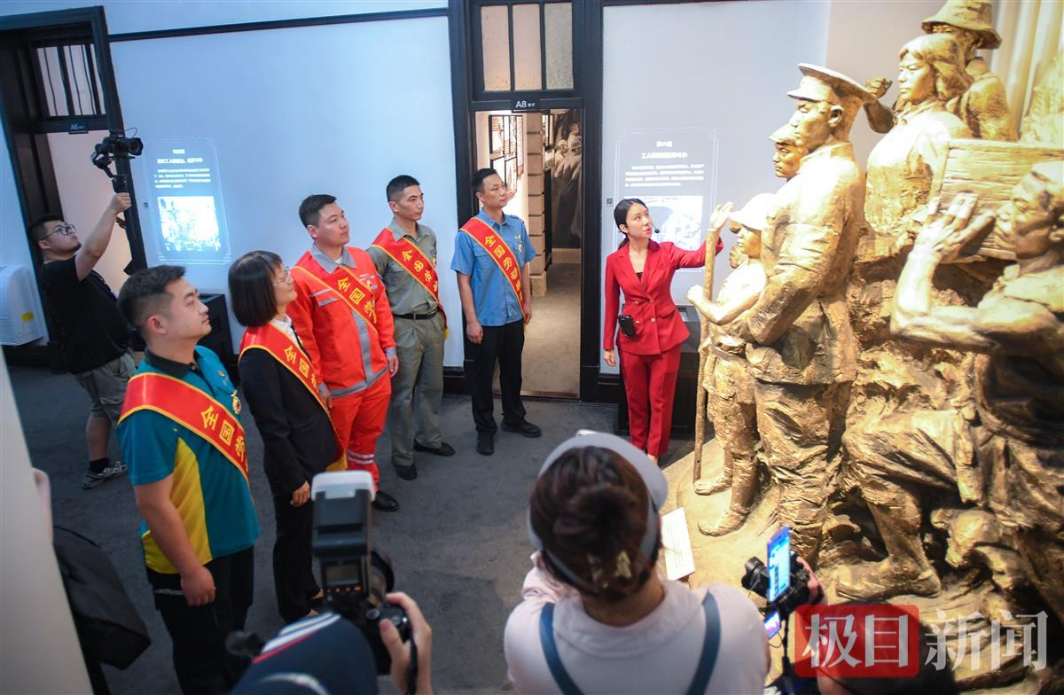 此次活动中,6名全国劳动模范代表身披绶带,集体参观了汉口中华全国总工会旧址纪念馆。