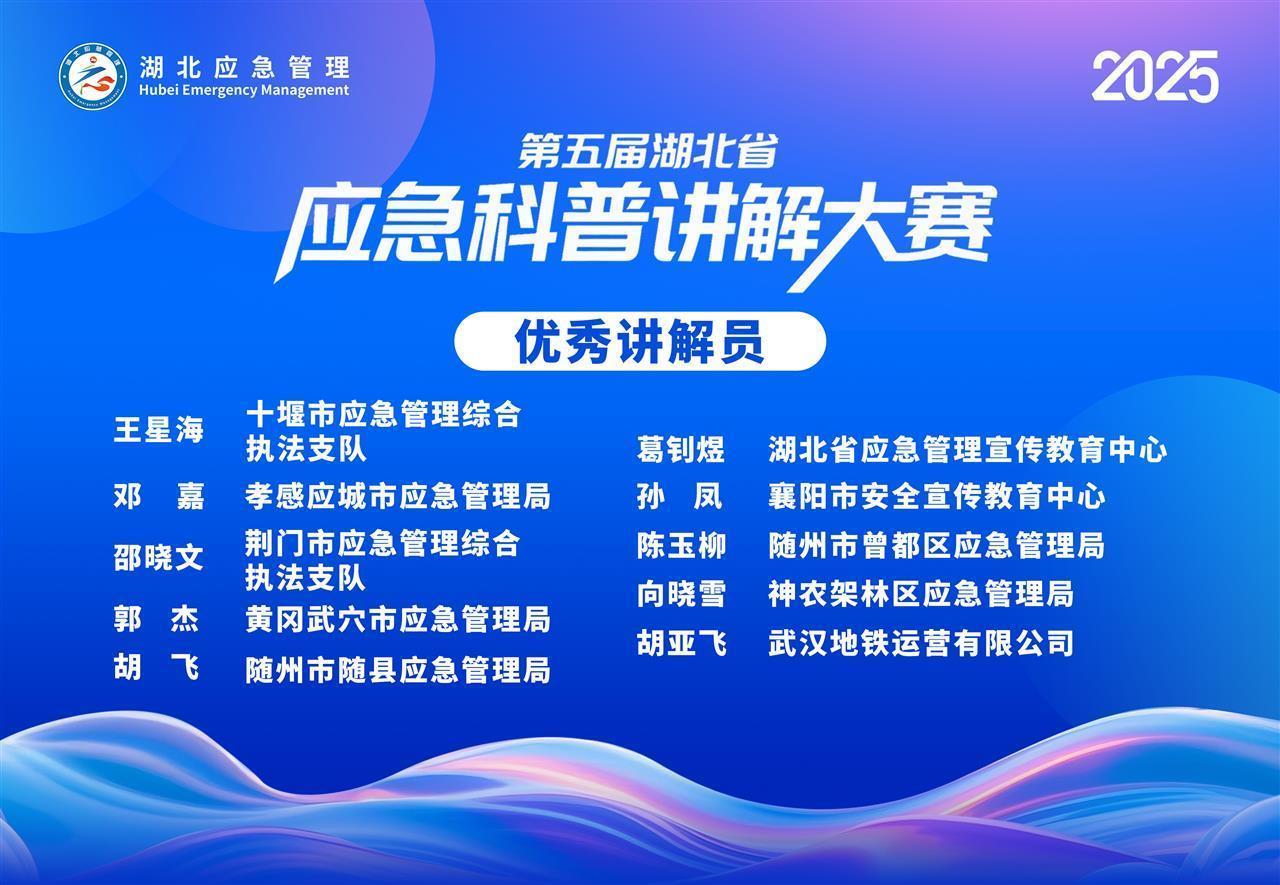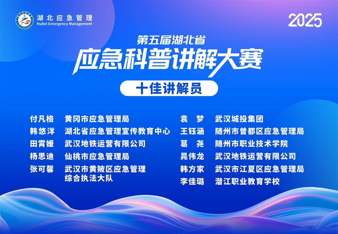 此次大赛由湖北省应急管理厅主办,湖北省应急管理宣传教育中心承办,已经成功举办五届。经过初赛、决赛的激烈角逐,大赛评选产生了21名获奖选手(两名选手分数相同并列获奖),分别为“第五届湖北应急科普十佳讲解员”和“第五届湖北应急科普优秀讲解员”。