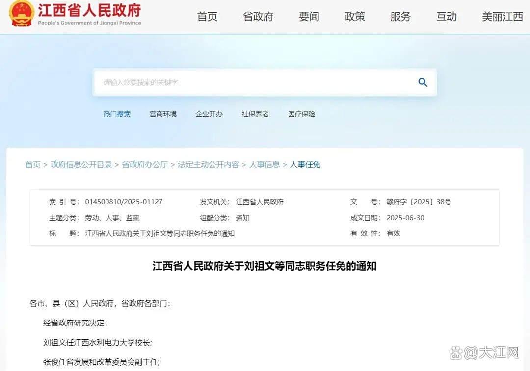 江西省人民政府关于刘祖文等同志职务任免的通知