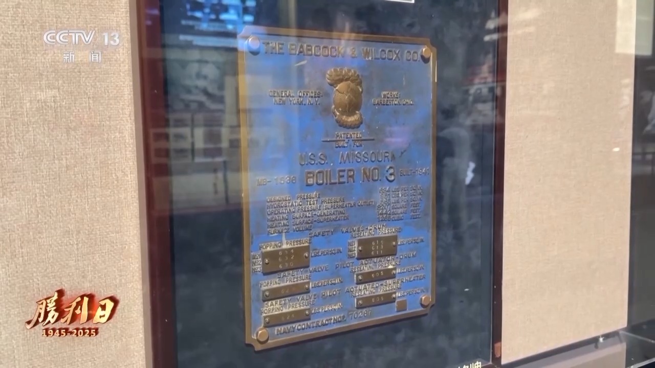 这个锅炉铭牌来自一艘战舰,一艘在1945年9月2日,日本无条件投降签字仪式所在的战舰——“密苏里”号。在这里,参观者们还可通过多媒体大屏,看到当时的真实影像。