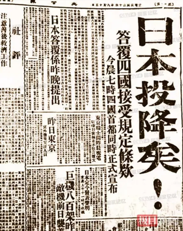 1945年8月15日《大公报》对日本投降的报道