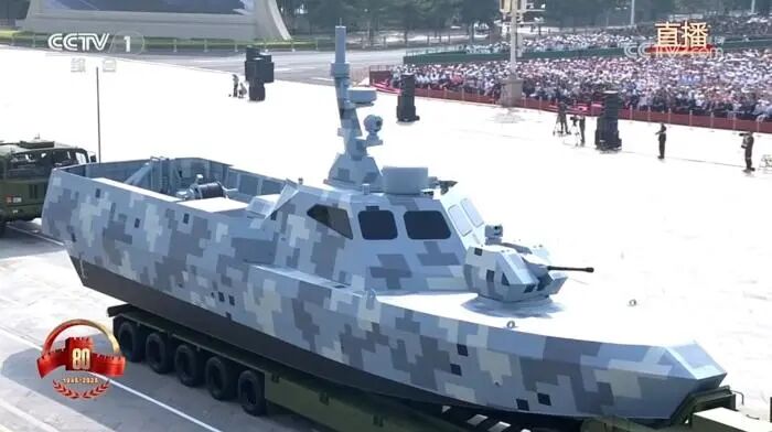 身披白灰蓝海军迷彩的新型无人艇