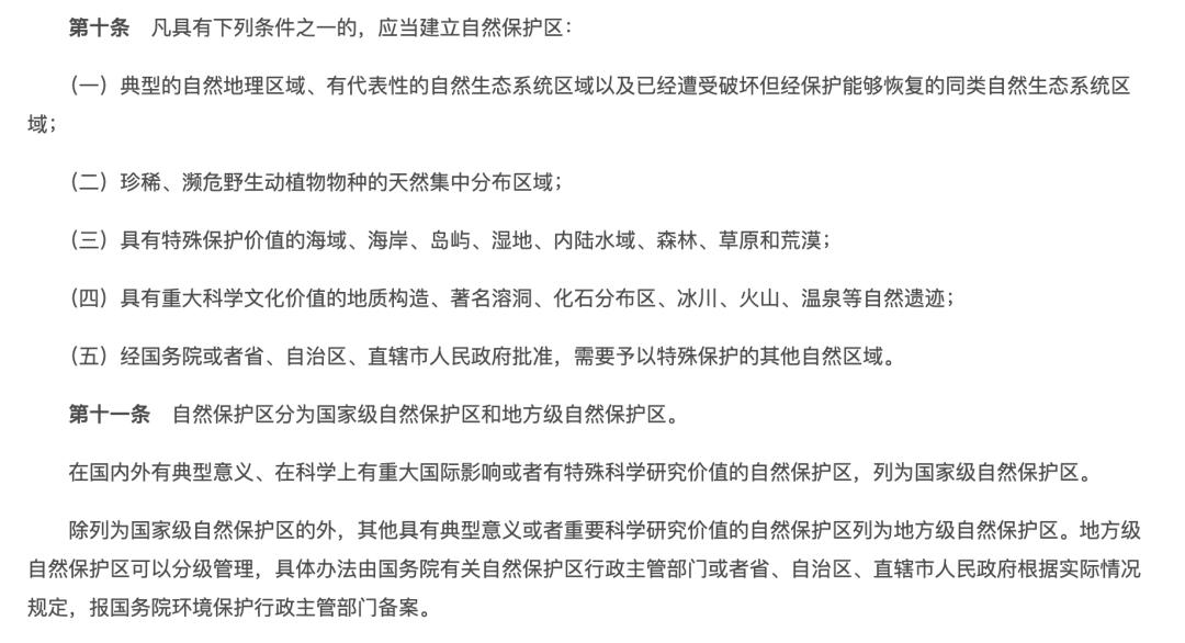 △《中华人民共和国自然保护区条例》中关于自然保护区的部分规定