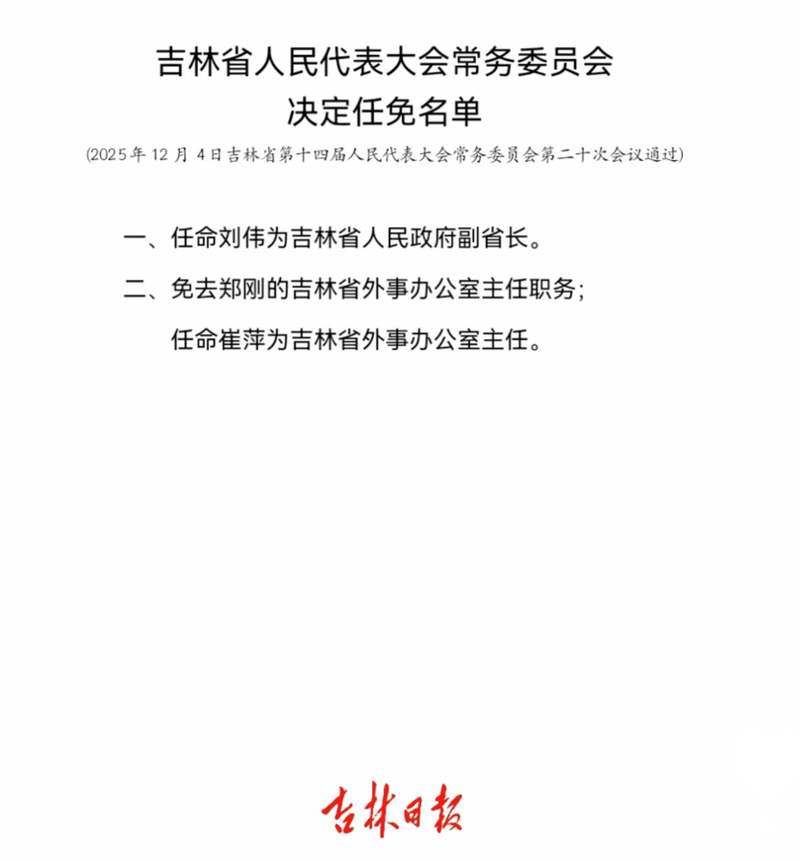 据彩练新闻客户端消息,刘伟任吉林省副省长。