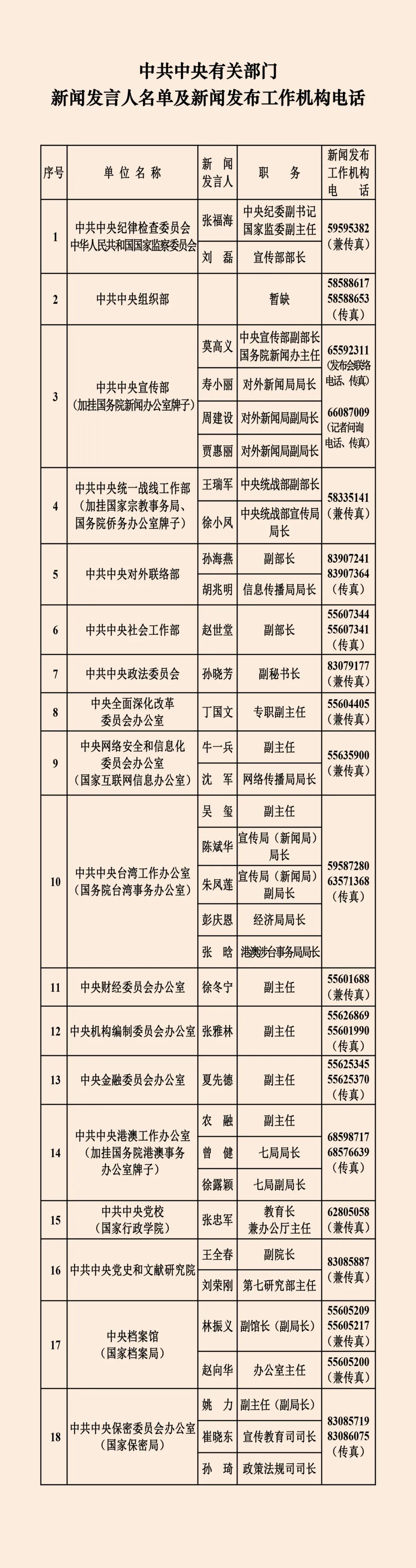 还有一些中共中央有关部门的新闻发言人做出了调整。