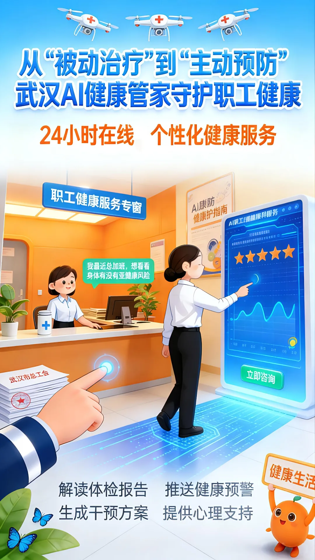 法律服务与协商调解“更便捷”。昆明市总工会的“女职工法律咨询AI助手”,基于DeepSeek模型与知识图谱,提供7×24小时法律智能应答,将咨询响应从1-2个工作日缩短至秒级。安徽灵珠人才的“法小劳”平台,作为国内首款“劳动法+人力资源”垂直大模型,提供免费AI法律咨询,其工伤代办服务可将传统3-6个月的办理周期缩短40%以上。珠海市总工会的“慧协商”平台,通过AI辅助集体协商,将数据处理时间压缩90%,协商流程从传统7天压缩至4天,效率提升40%。武汉市职工服务中心的“AI数字人辅助健康管理”系统,集成多模态交互与专业知识图谱,为近百万职工提供全天候主动健康管理,使健康干预成功率提升至75%,管理成本降低60%以上。深圳市总工会的“AI+工伤探视”功能,通过智能语音交互实现职工“一句话”申请,材料自动校验为审核人员提供“一分钟初判”,将审核效率提升超过70%。