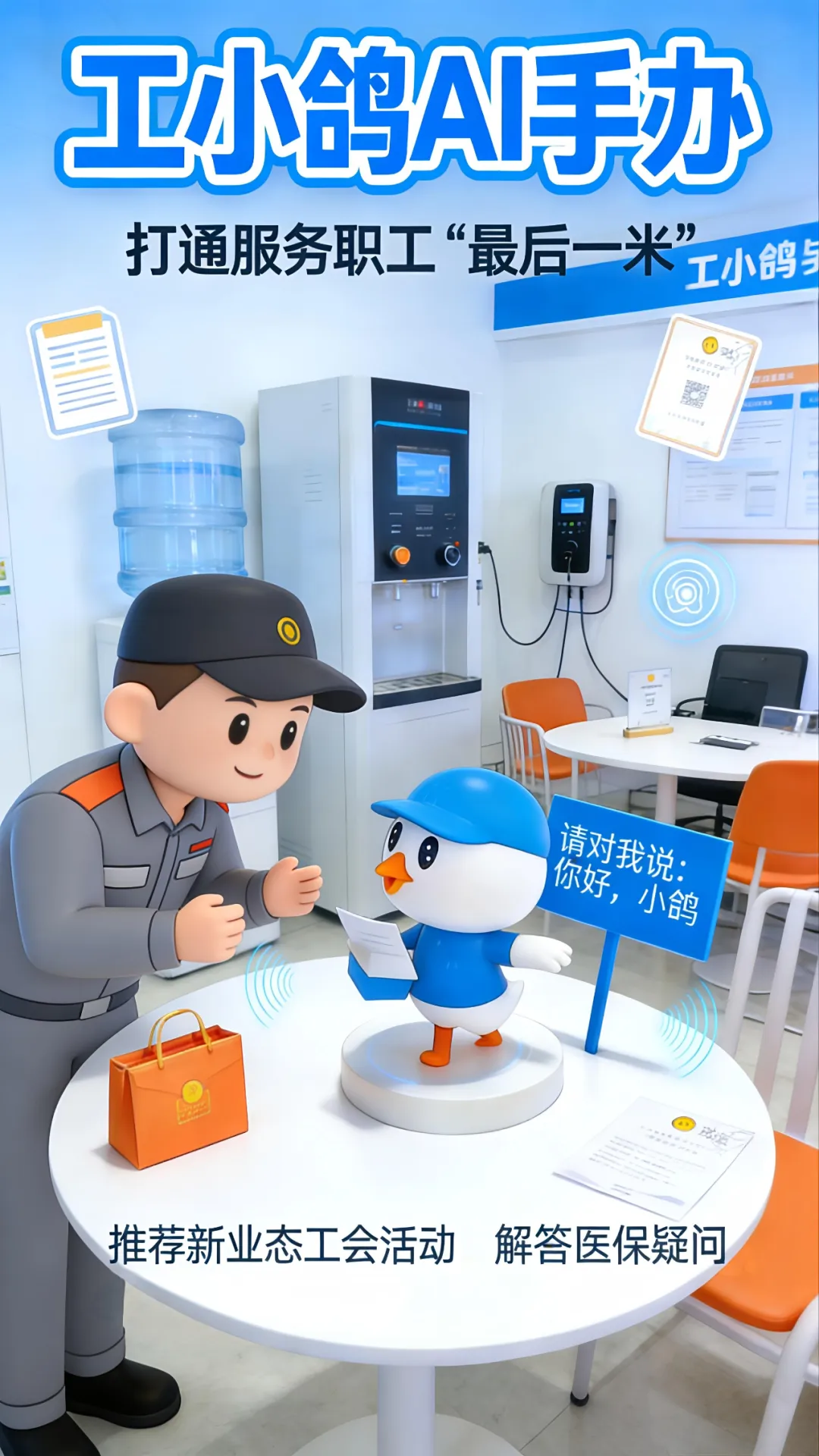 精准服务与主动关怀“更温暖”。各地工会创新应用形式,将智能化服务送达职工身边。大连市总工会构建私有化AI平台,打造医疗咨询、就业匹配等五大场景,政策咨询准确率达96%,服务实现秒级响应。青岛市总工会的“工小鸽”AI手办,以低成本集成大模型与语音交互,部署于工会驿站、职工书屋,通过红外感应主动问候,变“被动响应”为“主动关怀”。太原市物流货运行业工会的“工好运”智能体,嵌入37个互助微信群,24小时捕捉求助信息,5个月内,184条司机诉求得到满足,19起潜在矛盾成功化解,让流动的货车司机随时感受到工会的温暖。