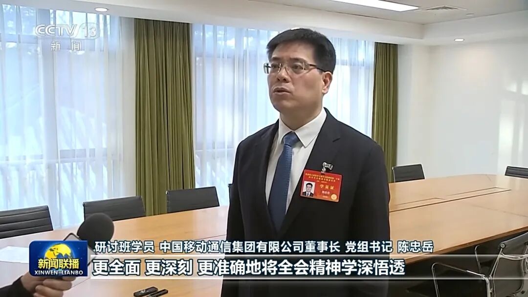 研讨班学员 中国移动通信集团有限公司董事长 党组书记 陈忠岳:领会把握四中全会精神就是要认认真真按照总书记要求,更全面、更深刻、更准确地将全会精神学深悟透。当前,数智技术深度融入经济社会各领域,对信息通信行业来讲具有广阔的机遇。我们将深化科技创新,发展新质生产力,将以网络强国、数字中国建设的新成效为中国式现代化建设贡献更大力量。