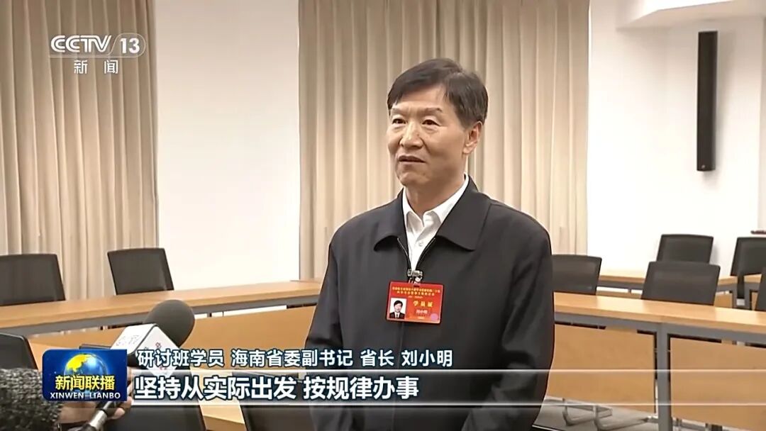 研讨班学员 海南省委副书记 省长 刘小明:海南将深入地贯彻习近平总书记重要讲话和二十届四中全会的精神,树立和践行正确的政绩观,坚持从实际出发、按规律办事,自觉地为人民出政绩、以实干出政绩。把海南自由贸易港打造成为引领我国新时代对外开放的重要门户,奋力谱写中国式现代化海南篇章。