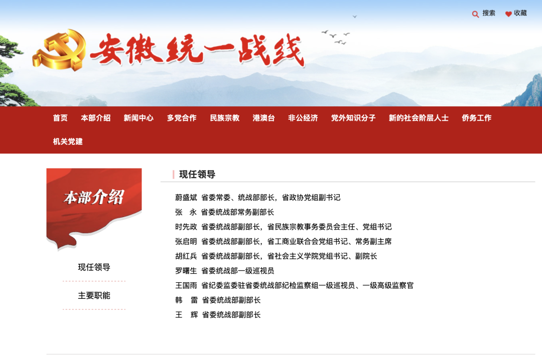 2月26日,安徽省委统战部“安徽统一战线”网站“现任领导”一栏更新显示,蔚盛斌已任省委统战部部长、省政协党组副书记。