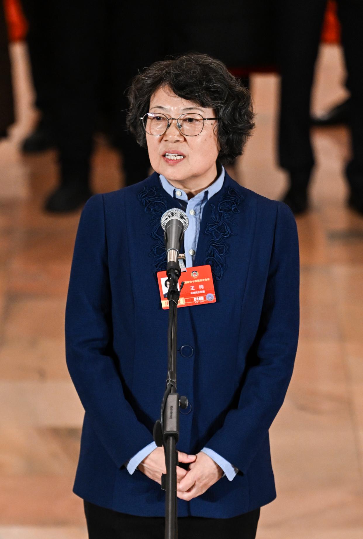 这是全国政协委员赵梅接受媒体采访。