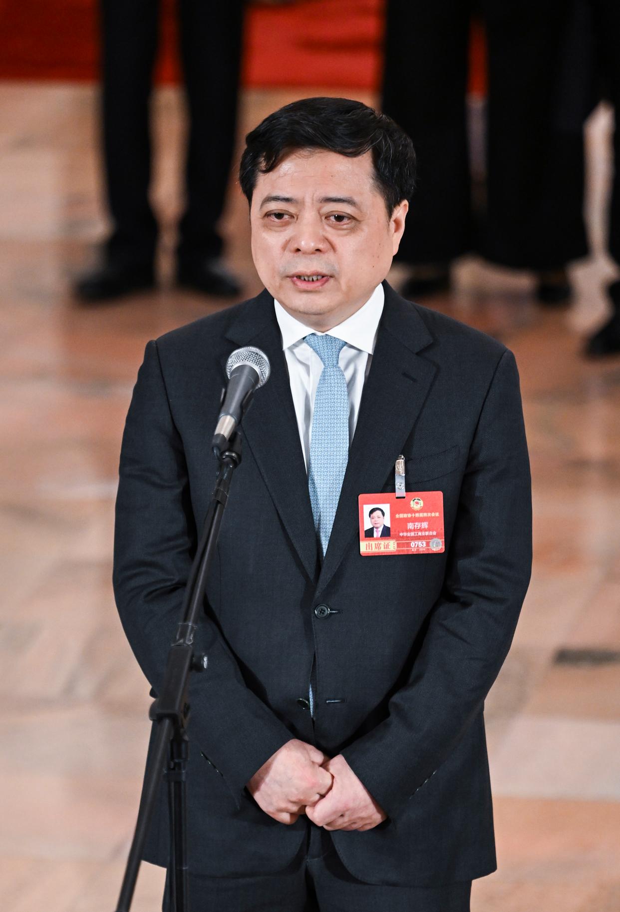 这是全国政协委员南存辉接受媒体采访。